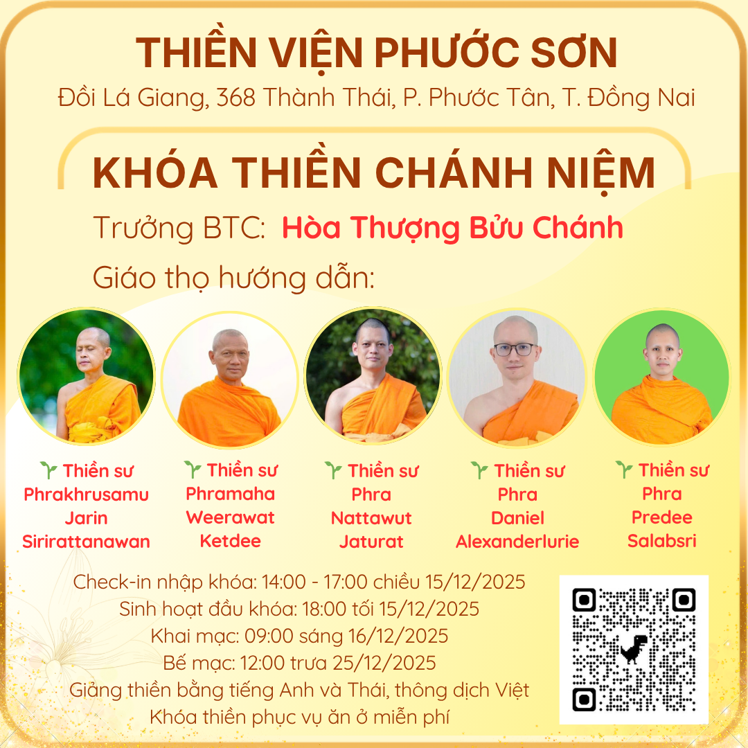 * Cập nhật các khóa tu tại thiền viện Phước Sơn tại website: phuocson.org