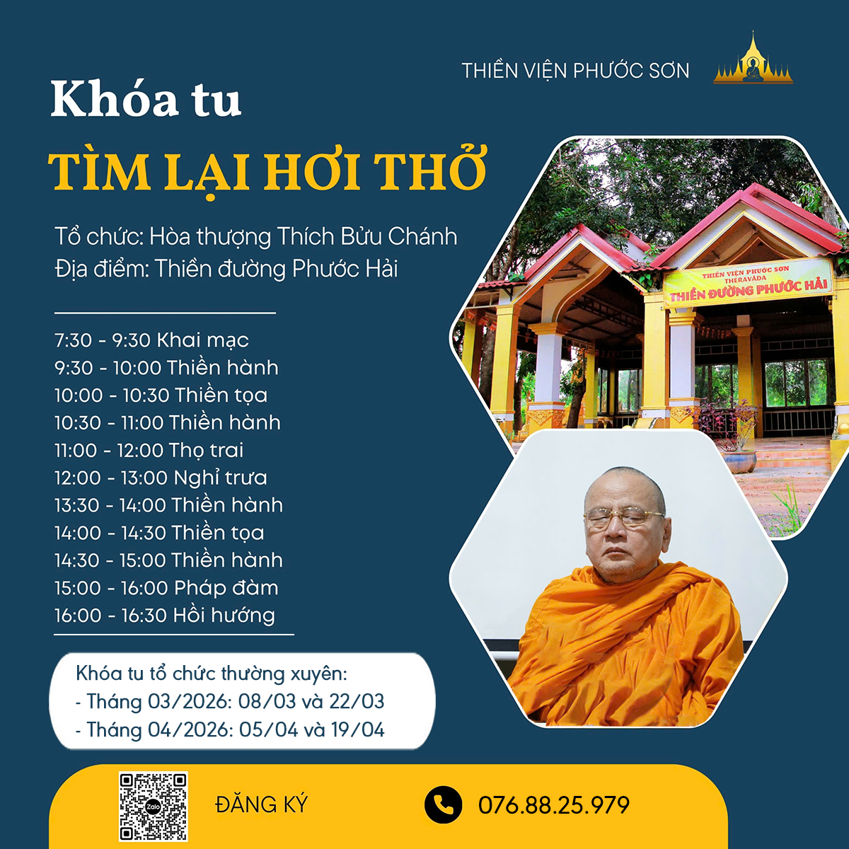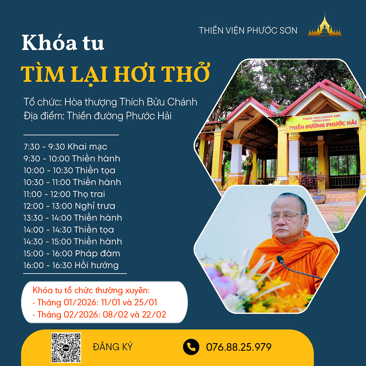 – Bước 7: Chủ động đến thiền viện Phước Sơn tham dự khóa tu theo thông báo trong biểu mẫu và Ban Tổ Chức.