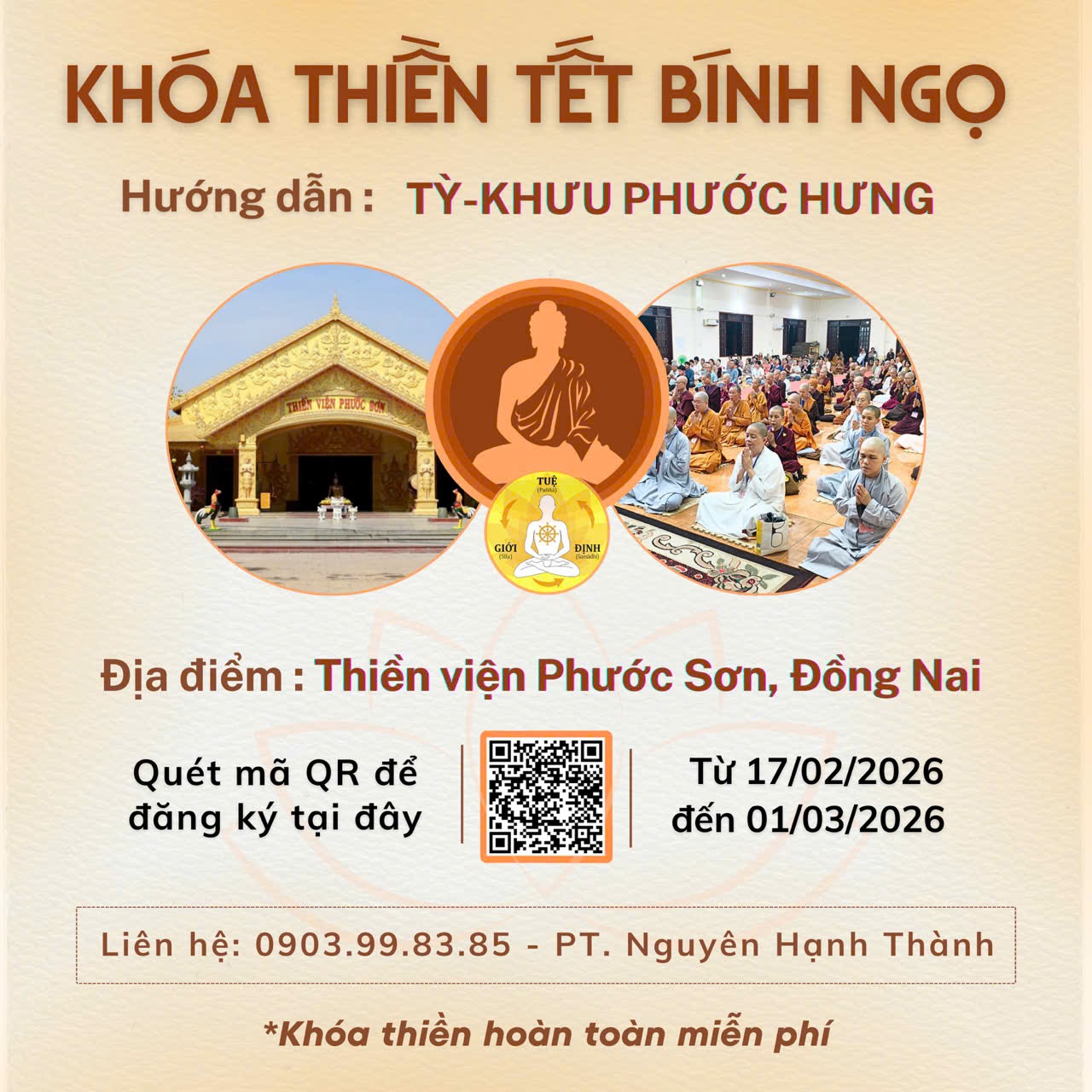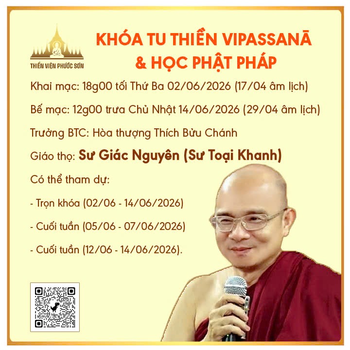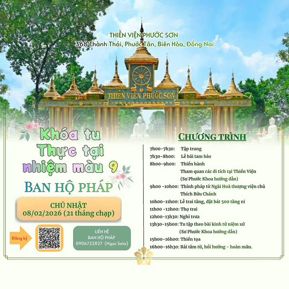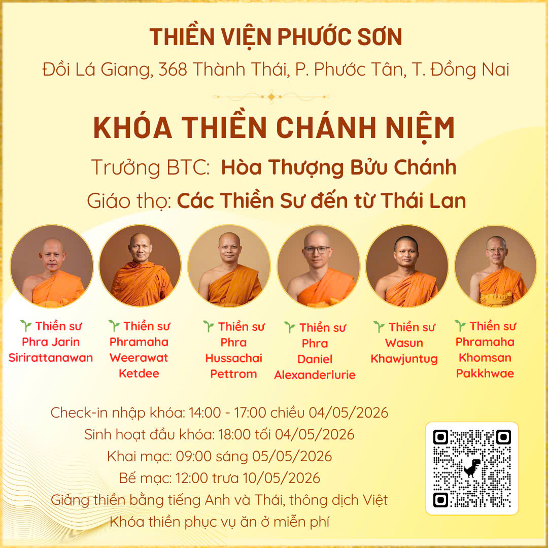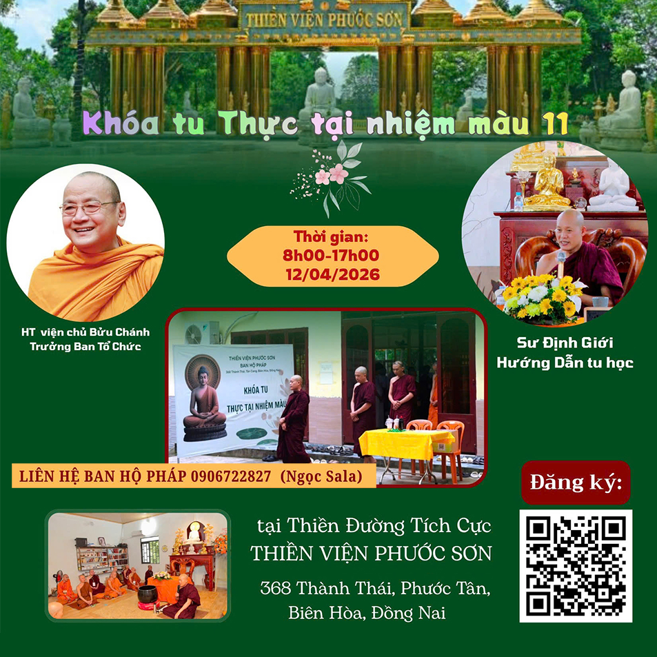 * Cập nhật các khóa tu tại thiền viện Phước Sơn tại website: phuocson.org